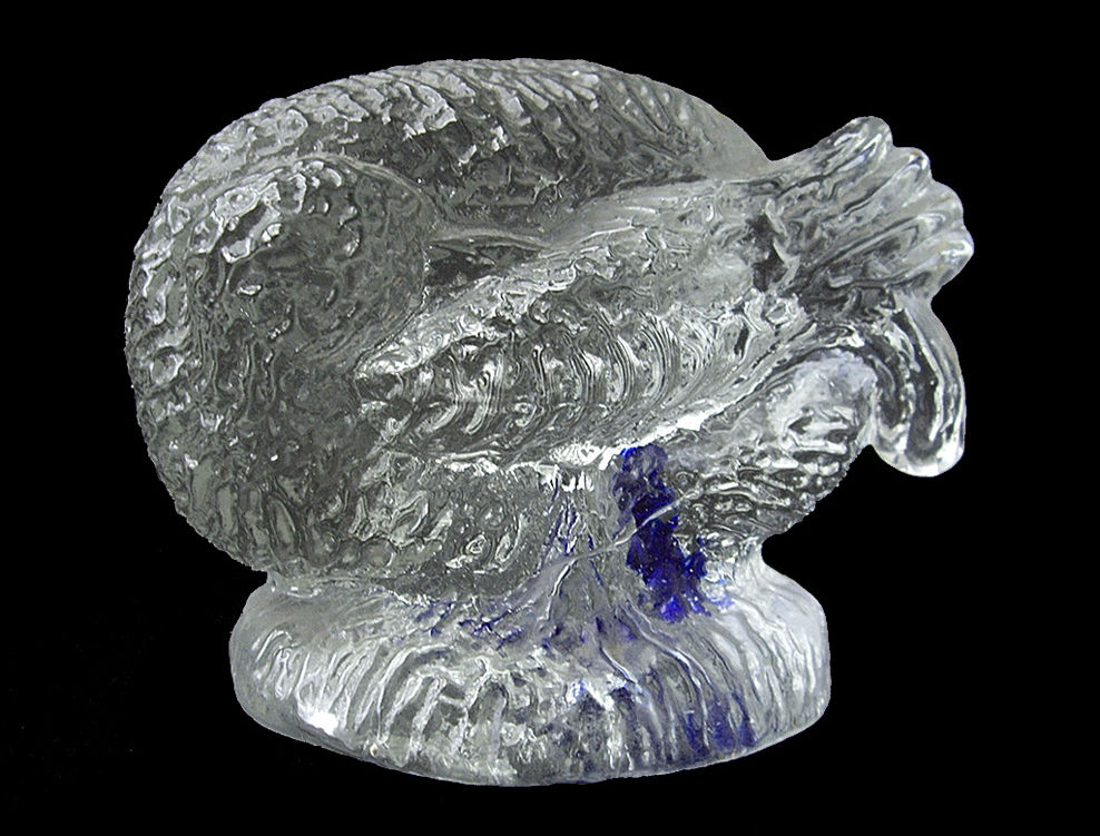 Glasgjutning Ingrid utförde dessa på konstnärernas kollektivverkstad KKV i Göteborg. [:sv]Fågel i gjutet glas[:en]Bird in cast glass[:]
