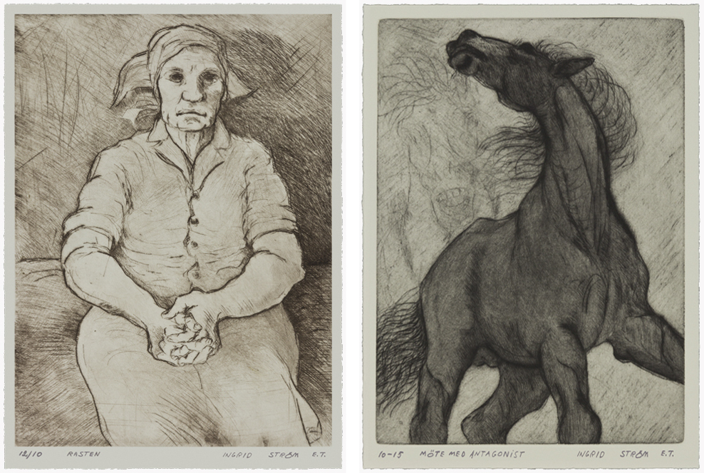 Representerad på The Tampa Museum of Art – Florida USA den 10 december 1981 med tre konstverk: ”Rasten”, ”En häst”, samt ”Ledaren” – Teknik: grafiska koppartryck. / Acquisitions Comittee of the Tampa Museum Federation Inc. to our permanent collection / John H Nozynskik, Director